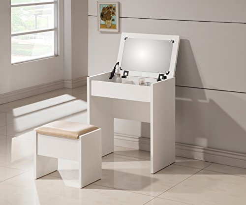 3-Piece Metal Make-Up Heart Mirror Vanity Dresser Table and Beige Stool Set, White
