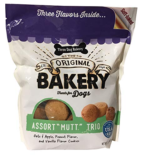 Three Dog Bakery "Mutt" Assortment Oats Applesauce Peanut & Vanilla Flavor Cookies (1 Pack), 2 Lb