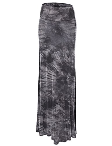 Lock and Love Women's Basic Solid Tie Dye Foldable High Waist Floor Length Maxi Skirt S-3XL Plus Size_Made in U.S.A.
