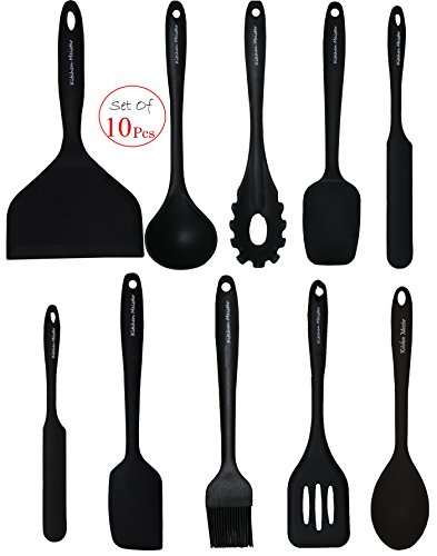 11'' Silicone Cooking/Baking Set (Black) - Set of 10 - Astounding Durability- High Heat Resistance - BPA Free - Easy to Clean