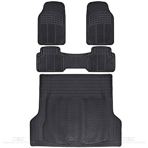 BDK MT35 Proliner Weather Rubber Auto Floor Mats and Cargo Liner-Heavy Duty 4Pc Set Fit for Car SUV Van & Truck (Black)