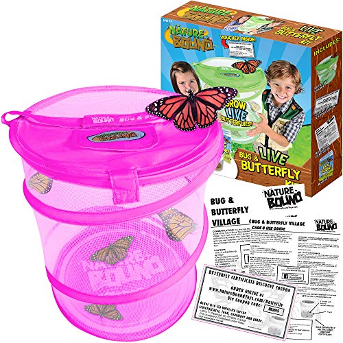 Nature Bound Butterfly Growing Habitat Kit - with Voucher to Redeem Live Caterpillars for Home or School Use - Pink Pop-Up Cage 12-Inches Tall