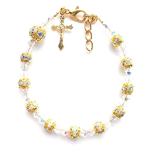 Rana Jabero Sparkling Rosary Crucifix Cross Charm Bracelet Made with Crystals from Swarovski - Gold Plated