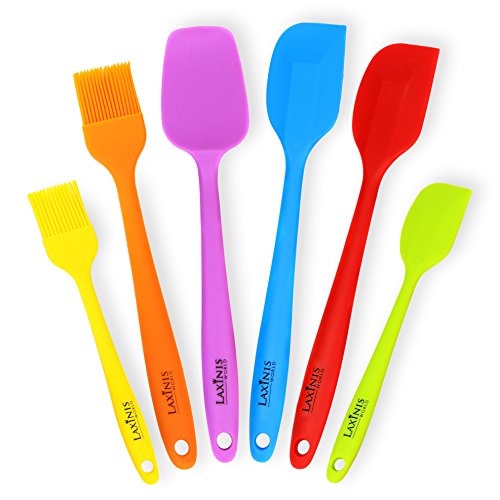 Laxinis World Silicone Spatula Utensil Set of 6 – Premium Baking Supplies Set Includes 2 Big Spatulas, 1 Small Spatula, 1 Big Spoon, 1 Big Basting Brush and 1 Small Brush (multi-color)
