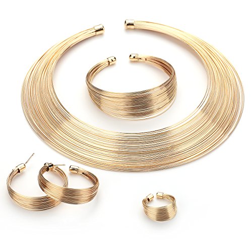Moochi Gold Plated Multiple Strands Necklace Earrings Bracelet Ring Jewelry Set