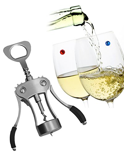 Simply Charmed Wing Corkscrew Wine Bottle Opener and 2 Swarovski Crystal Stemless Wine Glass Charms - Perfect Hostess or Housewarming Gift Idea