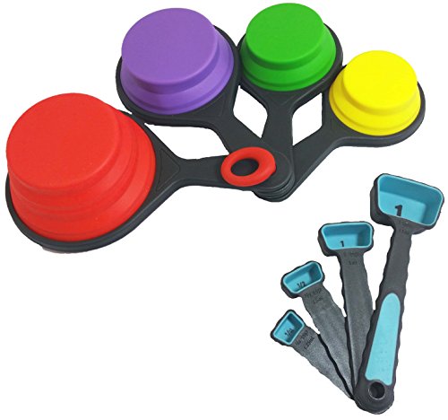 Measuring Spoons and Measuring Cups that are Collapsible Silicone for Space Saving Kitchen Storage, Great for Camper, Dorm Room or Cabin, by KookNook (Blue Teaspoon & Tablespoon)