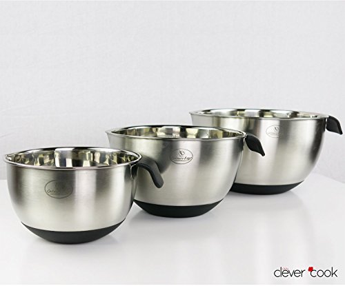 Clever Cook Heavy Duty Stainless Steel 18/10 Mixing Bowls with Handles Set of 3 (Black)