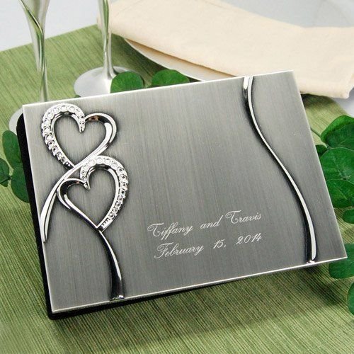 HBH & RaeBella Weddings Personalized Wedding Bling Love Double Heart Sparkling Silver Guest Book
