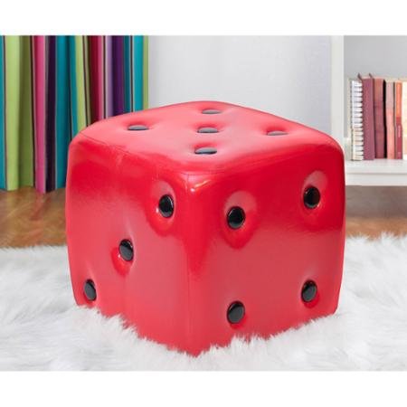 Urban Shop Contemporary Style Lightweight Structure 15 X 15 Dice 100 Percent Polyester Tufted Ottoman, Red with Black Finish