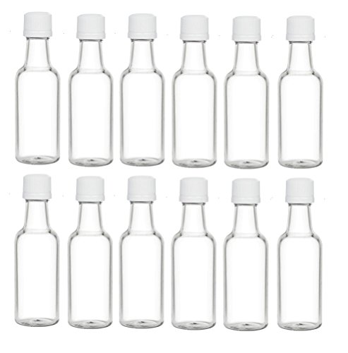 Nakpunar 12 pcs 50 ml Clear Plastic Liquor Bottles with White Cap - MADE IN USA
