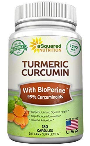 Pure Turmeric Curcumin 1300mg with BioPerine Black Pepper Extract - 180 Capsules - 95% Curcuminoids, 100% Natural Tumeric Root Powder Supplements, Natural Anti-Inflammatory Joint Pain Pills