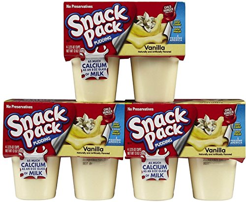 Hunts Snack Pack Vanilla Pudding FRESH (12 Cups Total 39 oz.) 3 Boxes of 4 Cups Each