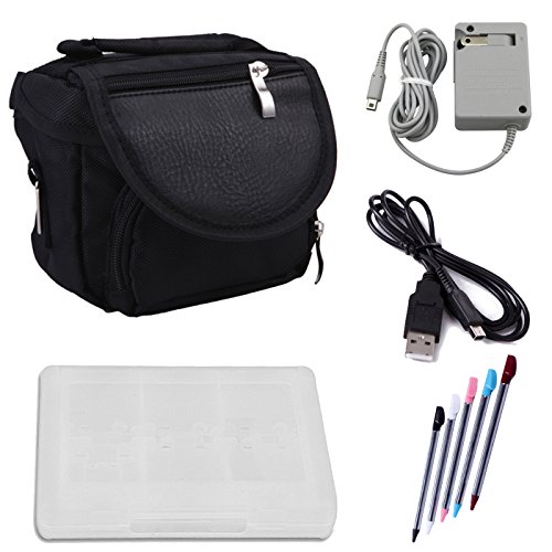 HDE Travel Bag Bundle for Nintendo 3DS Travel Bag Carrying Case + Game Card Holder + 5-Pack Retractable Stylus Pens + USB Charger Cable + AC Power Adapter (Nintendo 3DS XL, 3DS, DSi XL, DSi, DS Lite)