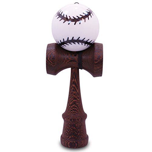 Baseball White & Black With Exotic Siamea Wood Handle Kendama