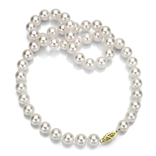 14k Yellow Gold 7.5-8mm White Japanese Akoya Cultured High Luster AAA Pearl Necklace, 15"