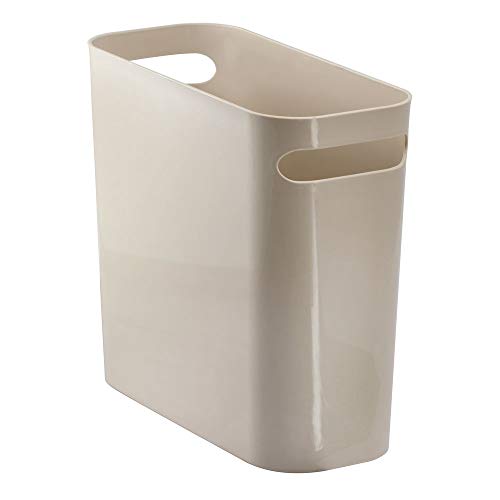 mDesign Slim Plastic Rectangular Small Trash Can Wastebasket, Garbage Container Bin with Handles for Bathroom, Kitchen, Home Office, Dorm, Kids Room - 10" High, Shatter-Resistant - Taupe/Tan