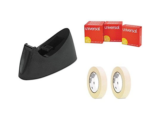 Universal Desktop Tape Set, 1" Core, Weighted Nonskid Base, Black