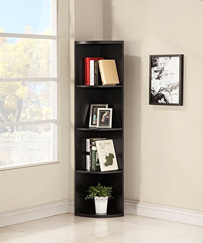 Cappuccino Finish Wood Wall 5-Tier Corner Bookshelf Bookcase