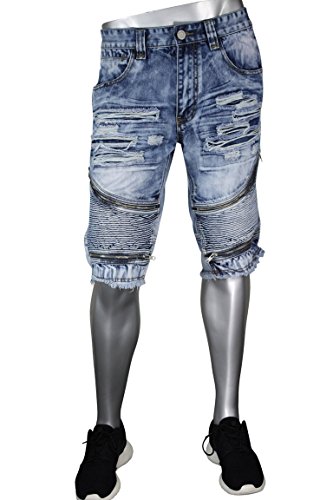 Smoke Rise Men's Raw Hem Rip & Repair Zipper Moto Denim Shorts