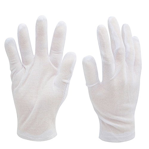 HipGirl Brand 12 Pairs Women 7-8'' Soft White Lightweight Cotton Coin Jewelry Film Silver Inspection Inspector Work Gloves. Size Small