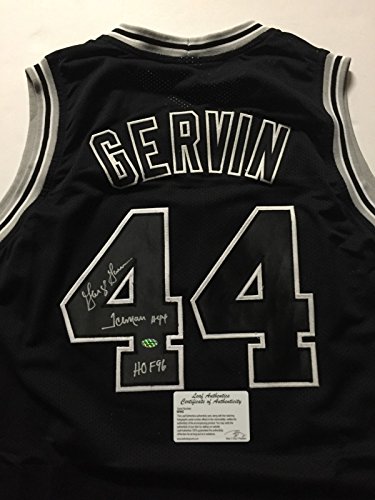 Autographed/Signed George Gervin "Iceman, HOF 96" San Antonio Spurs Black Basketball Jersey Leaf COA