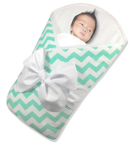 Bundlebee Baby Wrap/Swaddle/Blanket - Built-in Organic Infant Pad - Perfect for Bassinet and Easy Crib Transition - Lightweight - Gift Packaging - Newborns - Summer/Winter - Mint Chevron