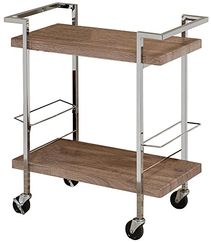 Reclaimed Wood Look Chrome Metal Bar Tea Wine Holder Serving Cart
