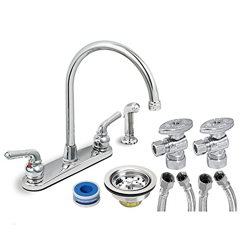 EverFlow Two Handle Kitchen Faucet Complete Installation Kit KFKT17188-20 Chrome Finish Sprayer w/ 20-Inch Long Braided 1/2" X 3/8" Supply Lines, Stainless Steel Angle Stops & Lead-Free Sink Strainer