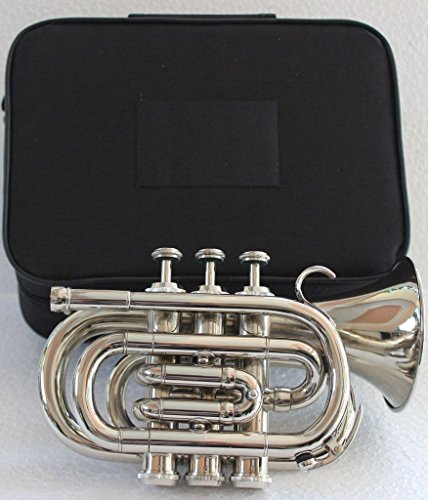 OSWAL Bb Flat Silver Nickel Pocket Trumpet W/Free Case+Mouthpiece