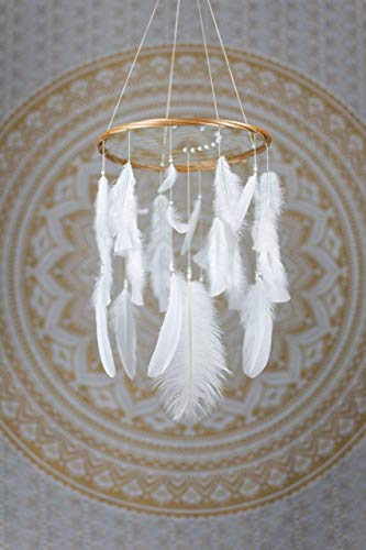Dream Catcher Mobile Large White - 12" / 30CM Diameter White Dreamcatcher Mobile Dreamcatcher Mobile Bohemian Dream Catcher Nursery Mobile Baby Mobile Boho Decor Wedding Decor