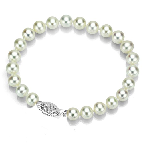White Japanese Akoya Cultured Pearl Bracelet for Girls Jewelry 14K White Gold 7.5-8mm 8 inches