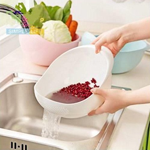 Honest Good Japanese Style Rice Washer & Quinoa Strainer Eco-Friendly BPA-Free Container with Fine Mesh Colanders Sieve Bowl Japan Kitchen Good for Cleaning Veggie, Fruit and Pasta White