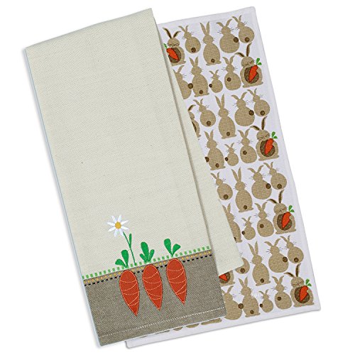 Bunnies and Carrots Spring Themed Kitchen Towels - Set of 2