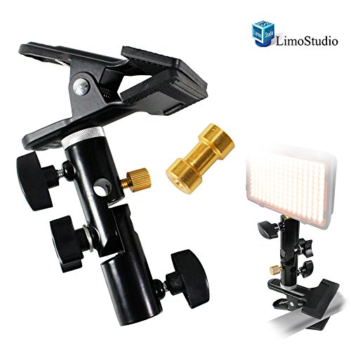 LimoStudio Clamp Clip Holder Light Stand Mount Bracket with Umbrella Reflector Holder & Female Screw Adapter Thread Brass Photography Studio, AGG1809