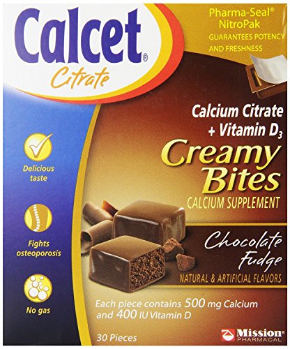 Mission Pharmacal Calcet Citrate Creamy Bites, Chocolate Fudge, 11g, 60 Count Total (Pack of 2))