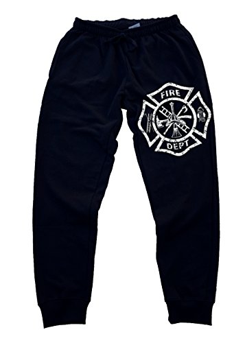 Interstate Apparel Inc Fire Dept. Men's Jogger Training Black Pants Running Fitted