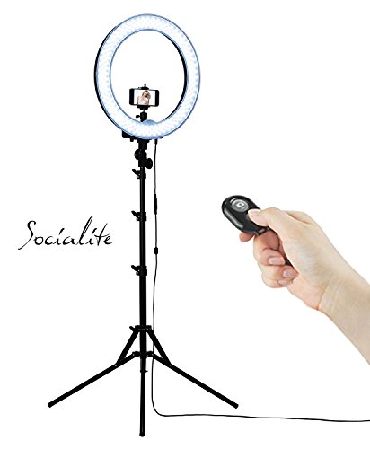 SOCIALITE 18" LED Dimmable Photo Video Ring Light Kit - Incl Professional Social Media Photography Studio Light, 6ft Stand, Remote, Heavy Duty Mount for DSLR Camera Fits iPhone 6s Android Smartphones