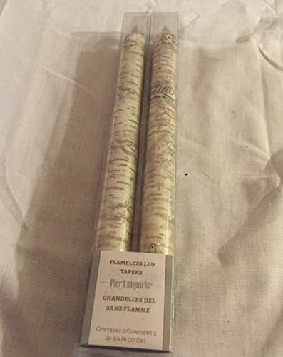 2pc Glitter Covered Birch Tree Design Led Flameless Taper Candles 11"