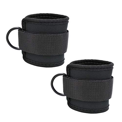 YYST Neoprene Padded Ankle Strap Ankle Cuff Wrist Cuff Fitness Cuff with D Ring and High Strength Adjustment for Cable Machines for Butt and Leg Weights Exercises (Pack of 2) - Fits Both Men and Women