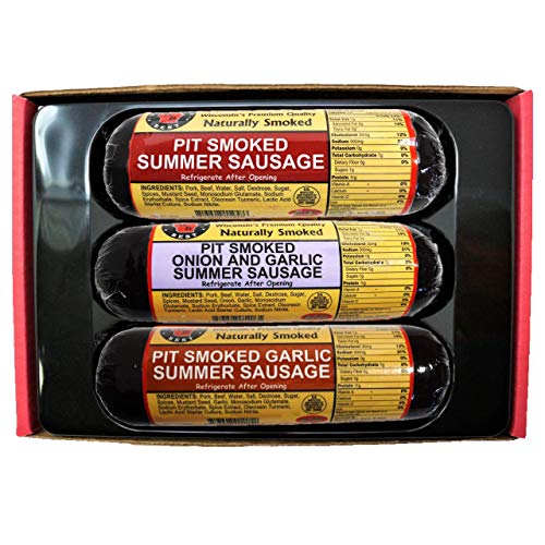 Wisconsin's Best 3-Piece Pit Smoked Summer Sausages Sampler Gift with Garlic, Original and Onion & Garlic Sausages, 12-Ounce