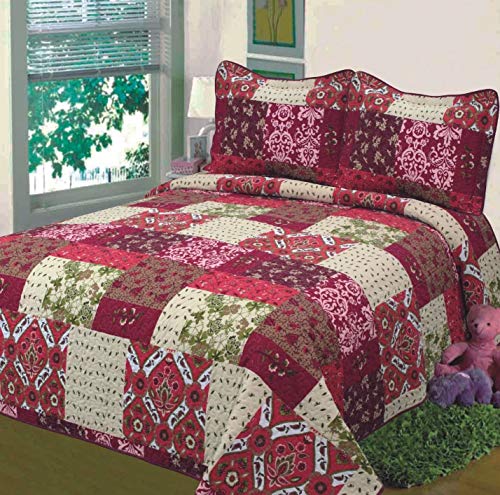 Fancy Collection 3pc Bedspread Bed Cover Floral Beige Red Green Brown Burgundy #51 King/California King Over Size 118"x 106"