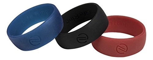 Life Ring Men's Silicone Wedding Ring for Active Lifestyles, Flexible, Safe & Durable, Comes in Black, Blue & Red in US Ring Size 10, 3 Pack