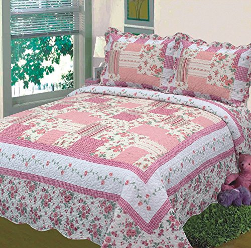 Fancy Collection 3pc Bedspread Bed Cover Floral Off White Pink New 0605 (Full/queen)