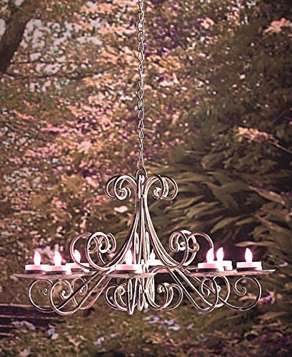 Cream Antique White Shabby Chic Metal Tealight Candle Srollwork Chandelier Decorative Indoor Covered Outdoor Patio Decoration