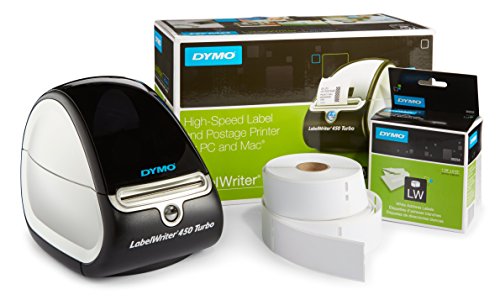 DYMO LabelWriter 450 Turbo Label Maker with 2 Bonus LW Label Rolls (350 Address & 300 Shipping), White, Self-Adhesive
