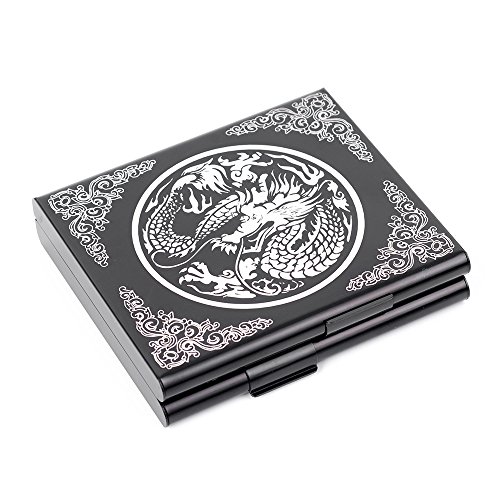 Carved Dragon Aluminum Metal Cigarette Case Card Case Holder for 20 Cigarettes (Black)