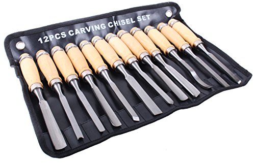 12 Piece Wood Carving Hand Chisel Tool Set Woodworking Professional Gouges With Pouch