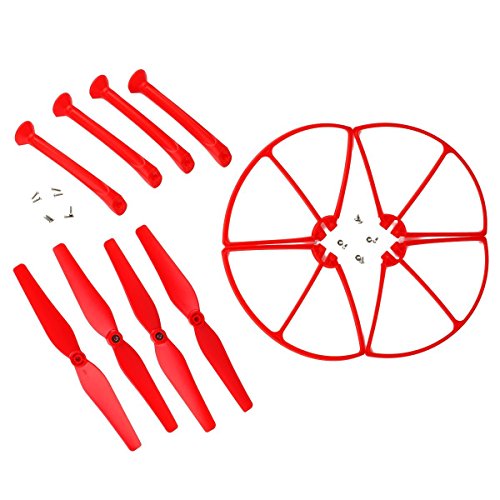BZONE 4pcs Main Propeller Blades Props + 4pcs Propellers Protectors Blade Frame + 4pcs Landing Skid for Syma X8 X8C X8W RC Quadcopter Spare Part Replacement, Red