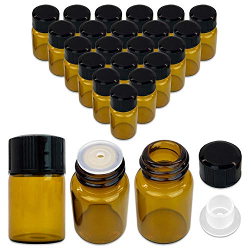 24 Packs Beauticom 2ML Amber Glass Vial for Essential Oils, Aromatherapy, Fragrance, Serums, Spritzes, with Orifice Reducer and Dropper Top